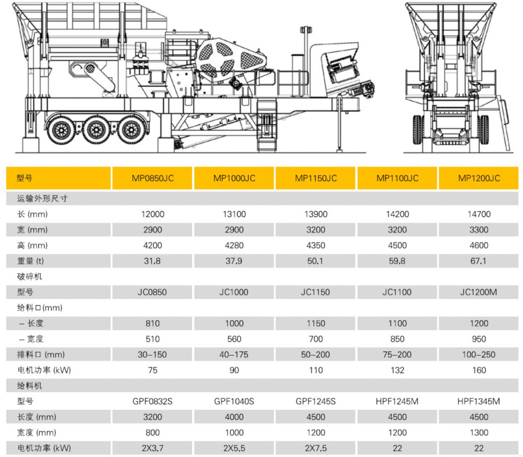 MP-JC系列轮胎移动颚式破碎站适用于矿山、骨料加工、建筑垃圾回收等领域的粗碎作业。